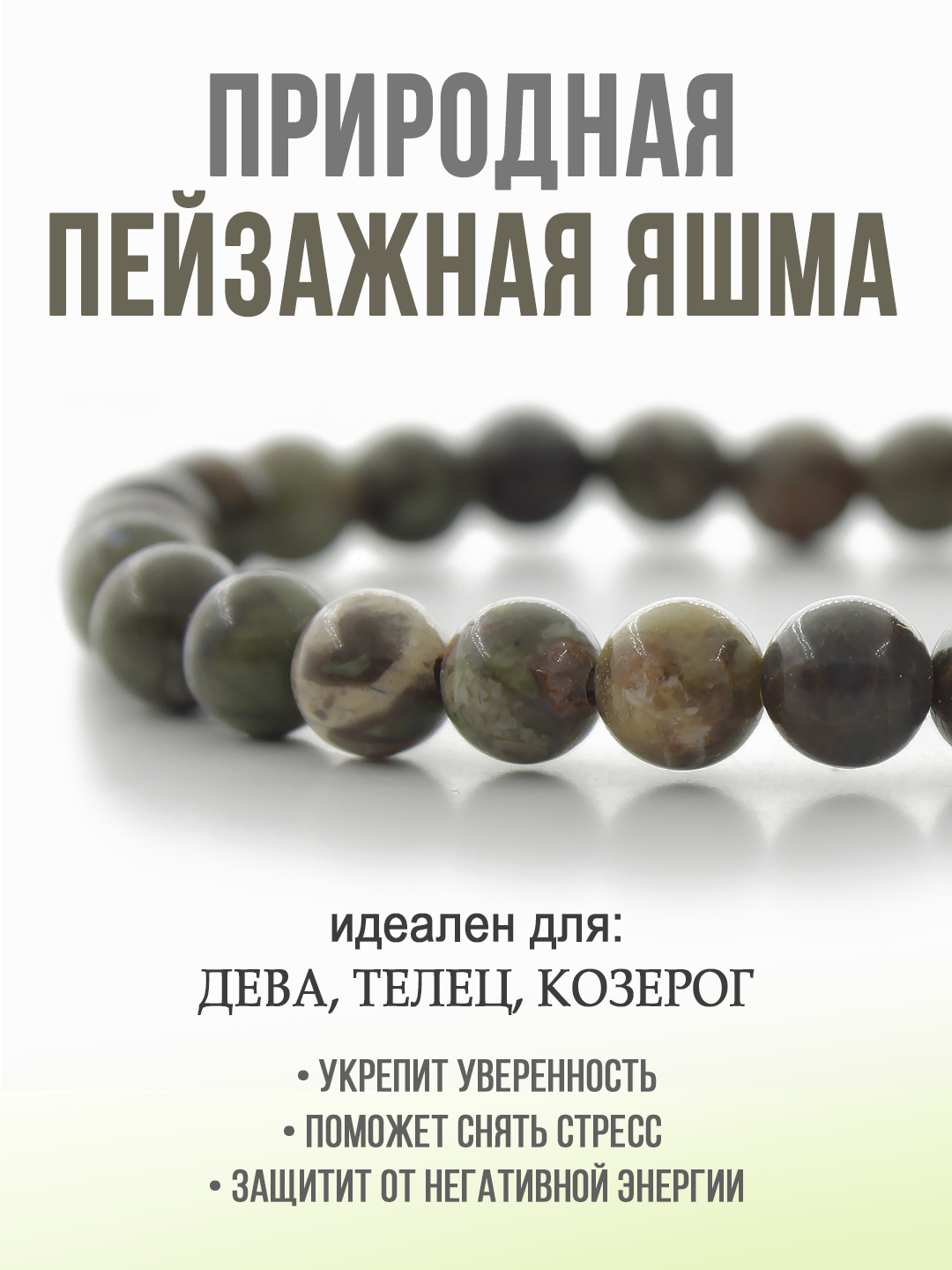 Яшма пейзажная (Урал) 6мм, браслет "Классика" длина 17см