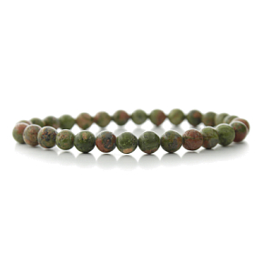Этот браслет сделан из шариков натурального унакита. Браслет на резинке. Диаметр шарика 6мм. Длина 17см.