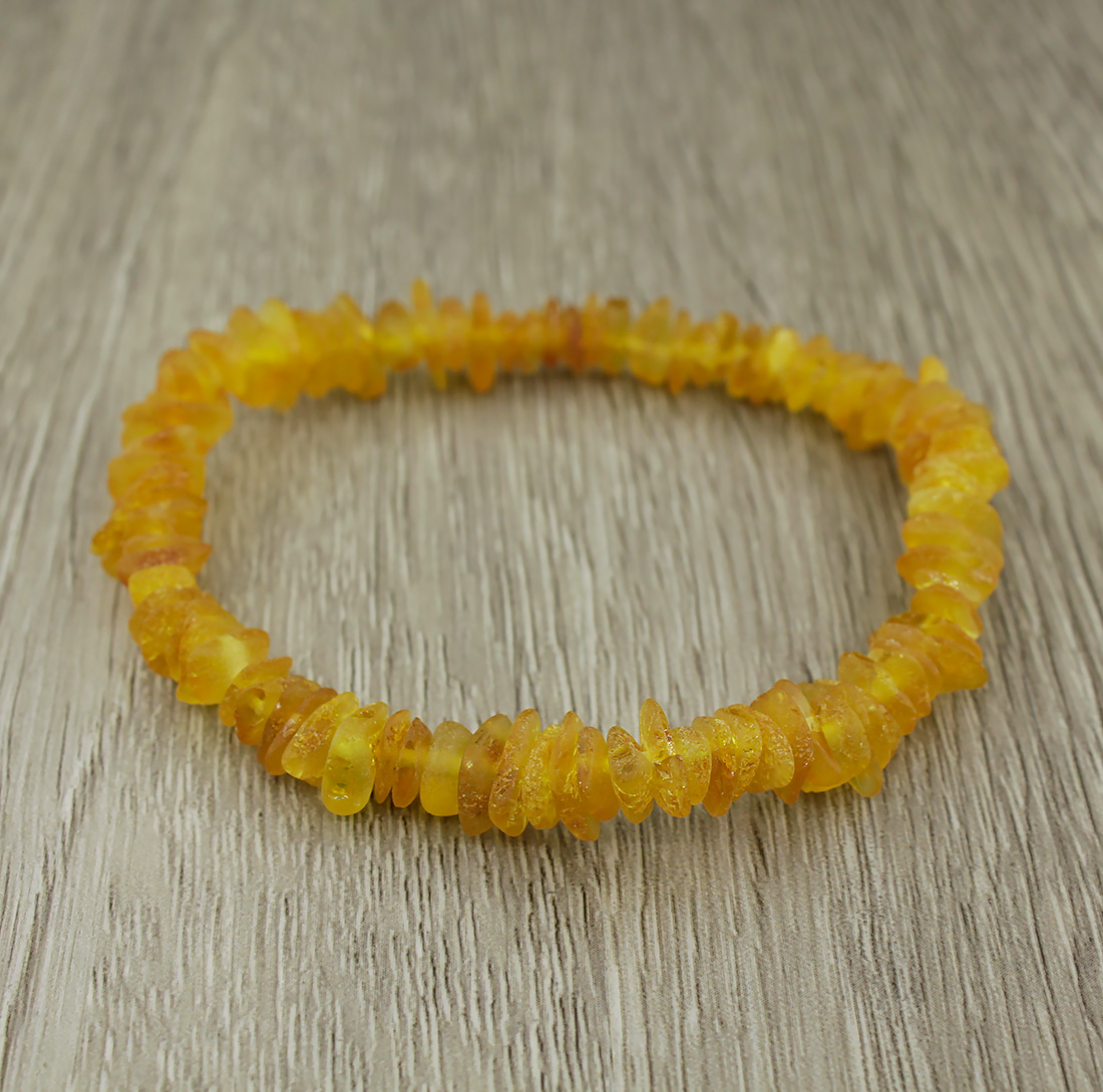 Браслет на резинке, выполнен из натурального необработанного янтаря. Длина браслета 18см.