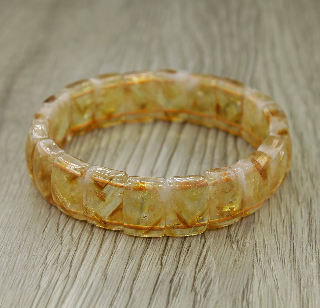 Браслет из натурального цитрина с бусинами прямоугольной формы. Размер бусин 10x15мм. Длина браслета 19см.