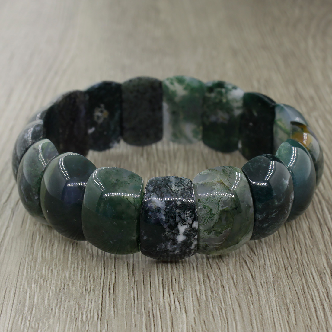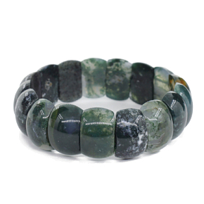 Гладкий браслет из натуральной зелёной яшмы. Прочная резиновая нить позволяет с комфортом снимать и надевать украшение. Длина браслета 19см. Ширина 20мм.