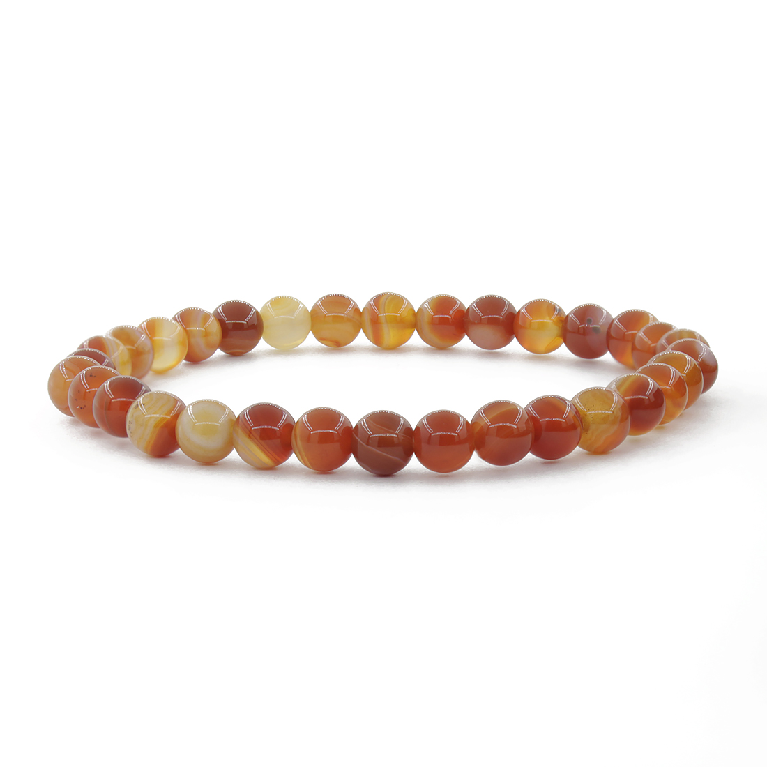 Тонкий браслет из мелких шариков натурального сердолика на резинке. Диаметр бусины 6мм. Длина украшения 17см.