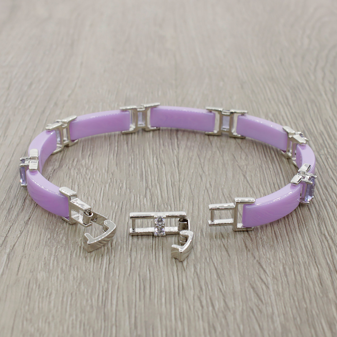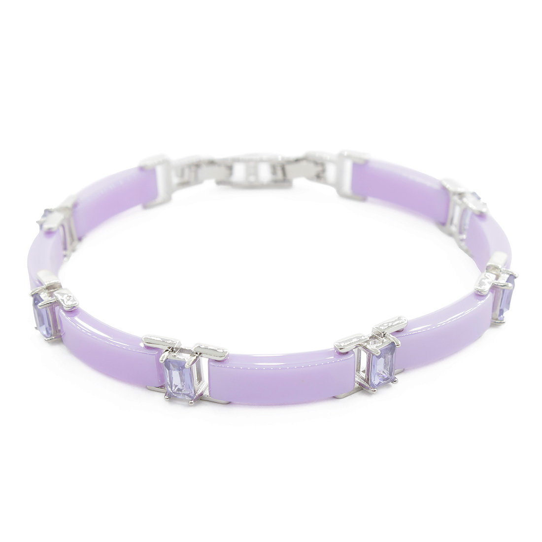 Браслет "Лилу" из фиолетовой керамики с Александритом покрытие светлый металл