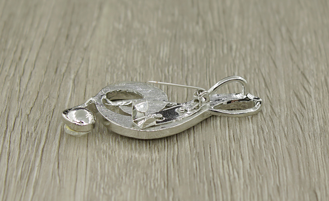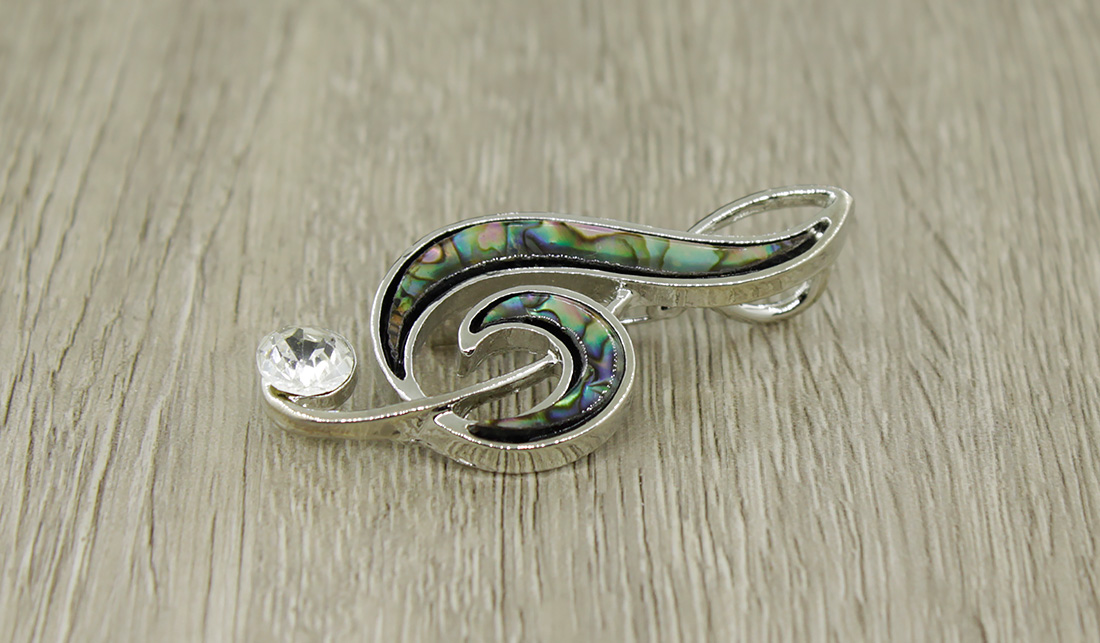 Брошь в виде ноты со вставками из гелиотиса. Размер броши 22х47мм. На украшении имеется скрытая петля, что позволяет использовать её, как кулон.