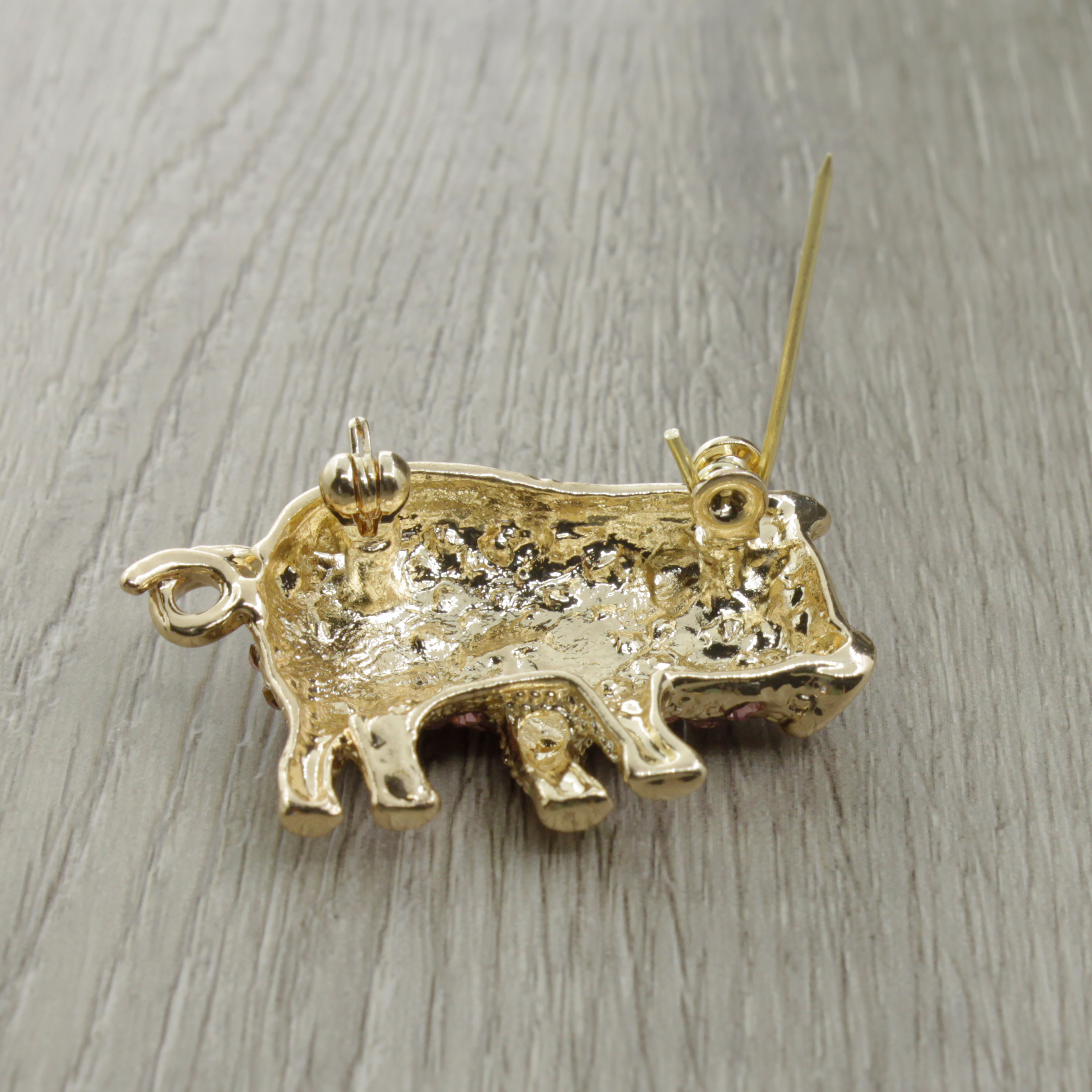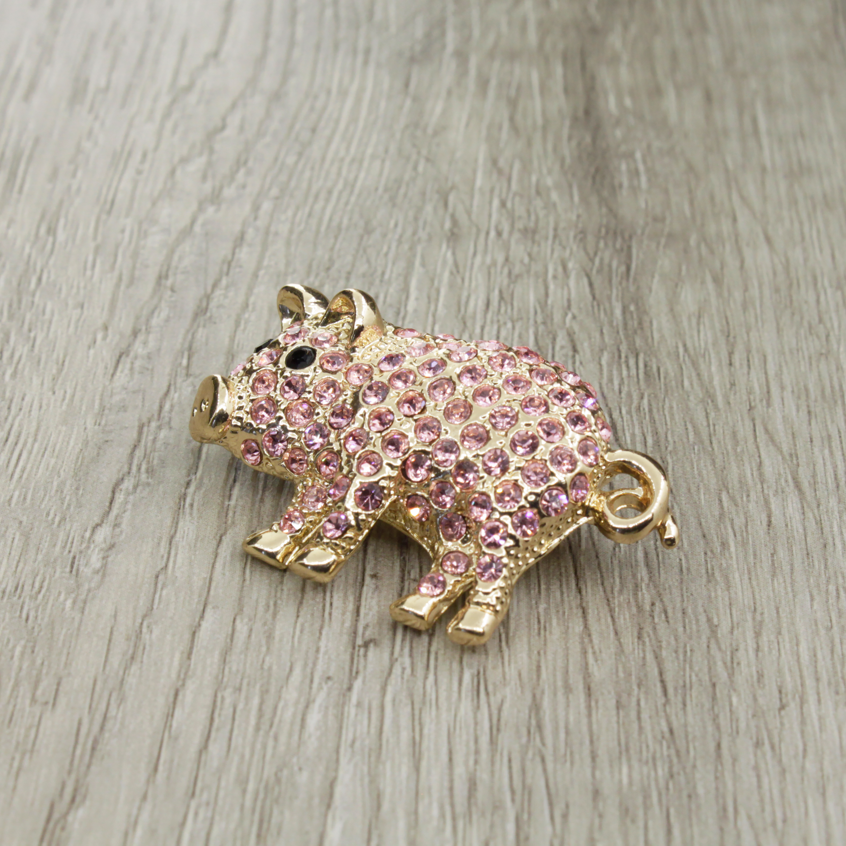 Брошь розовые фианиты "Свинка"
