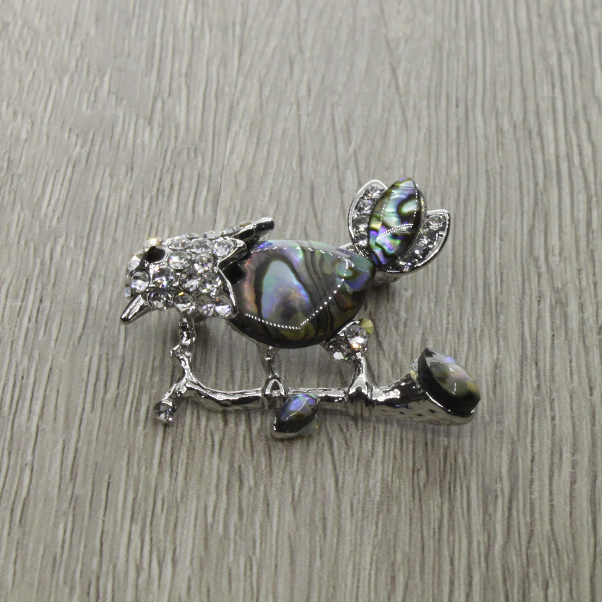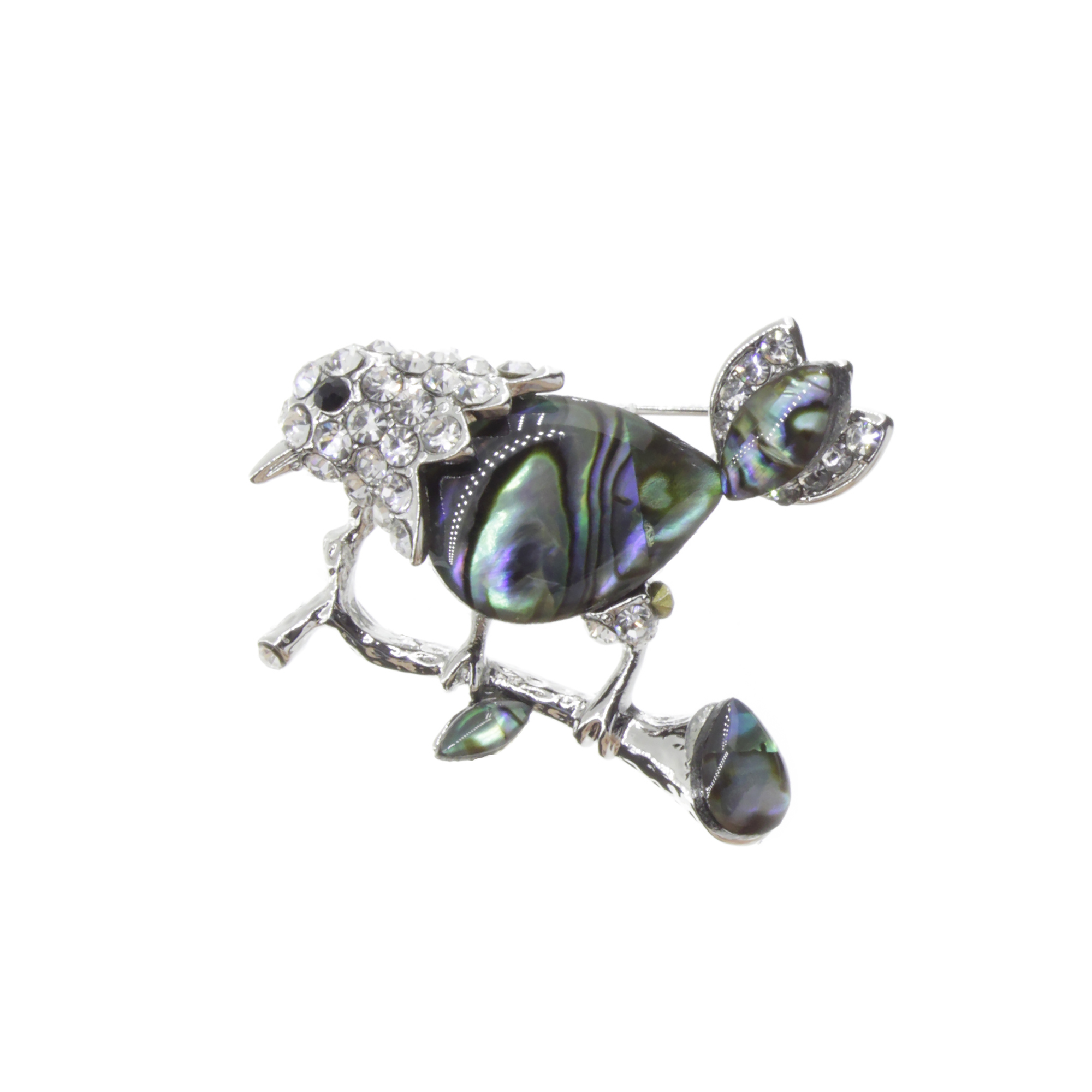 Брошь "Птичка" со вставками из гелиотиса и ювелирного сплава