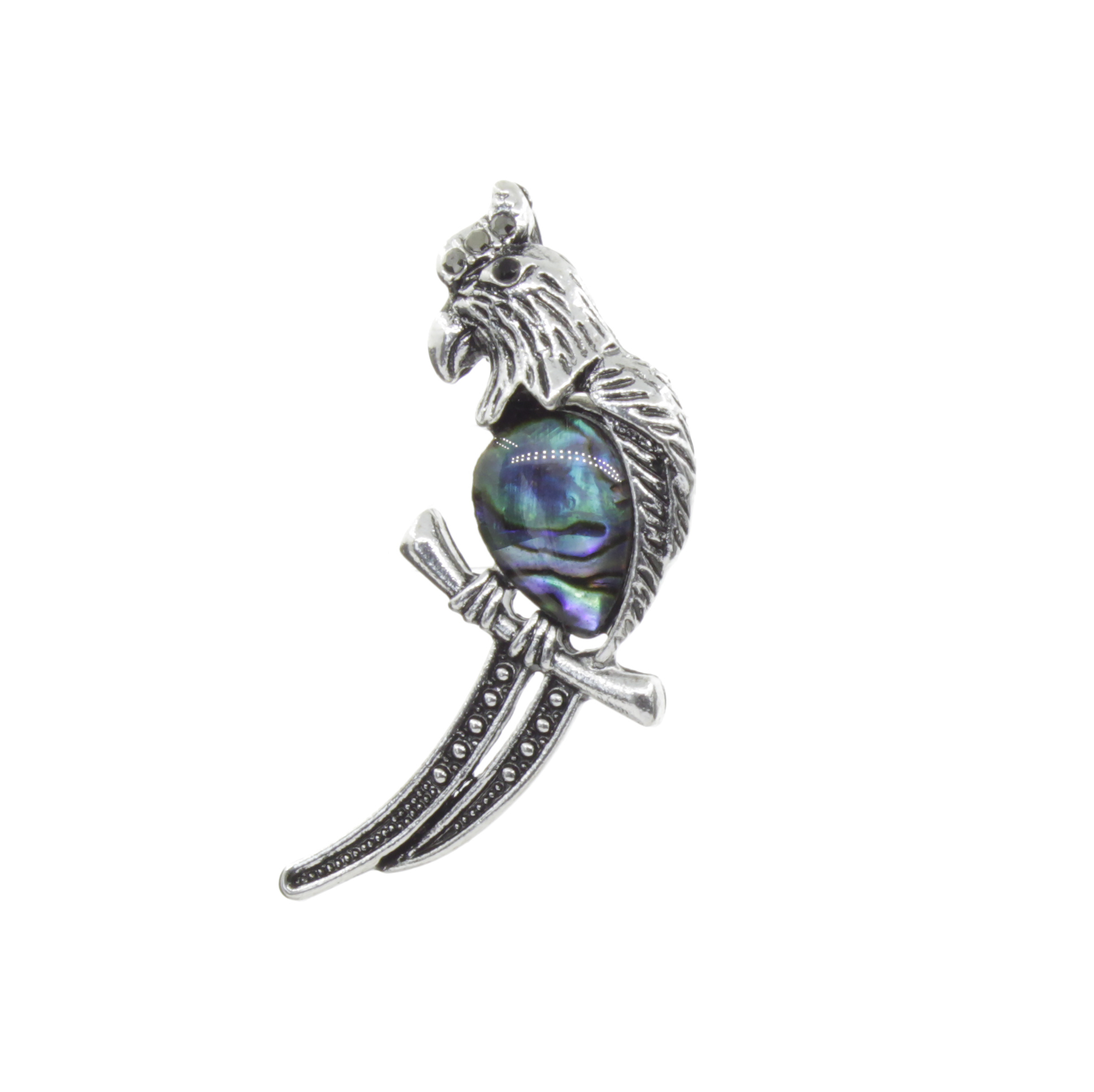 Брошь "Попугай на веточке" со вставкой из гелиотиса