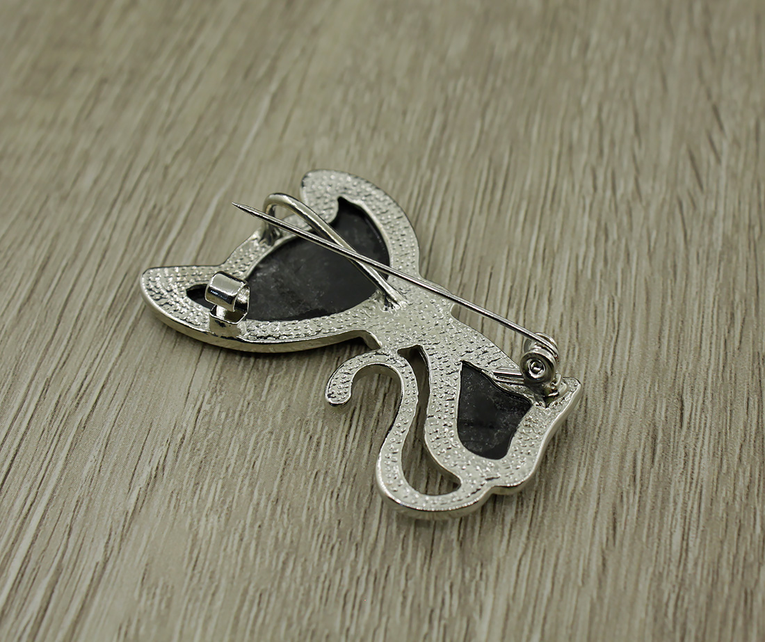 Этот милый котенок сделан из особого вида перламутра - гелиотиса. Маленький бантик на его шее дополнен стразами. На украшении имеется скрытая петля, что позволяет использовать брошку как кулон. Размер брошки 32х54мм.