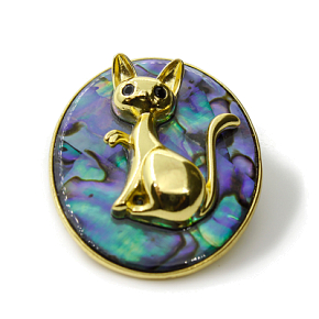 Овальная брошка из перламутра гелиотиса со вставкой в виде кошки. Размер брошки 37х46мм.