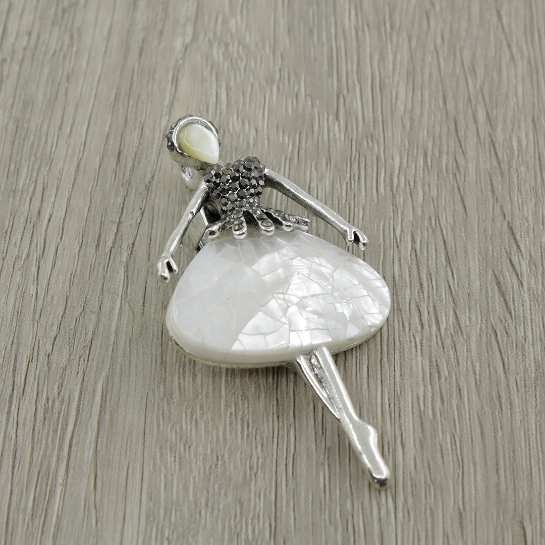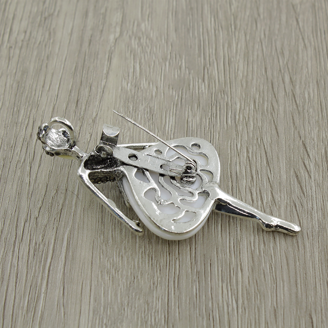 Эта очаровательная брошь в образе прекрасной балерины однозначно дополнит любой Ваш образ. На украшении имеется скрытая петля, что позволяет использовать брошку как кулон. Размер броши 35х70мм.