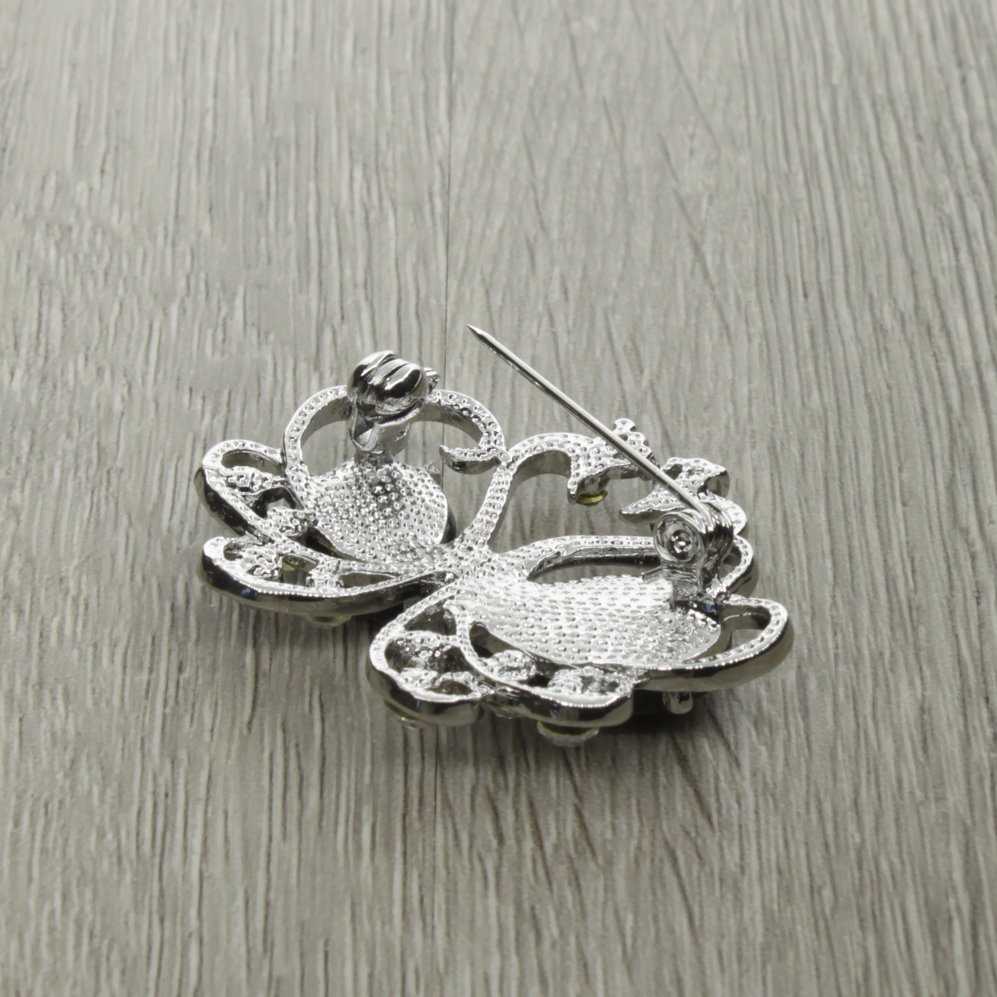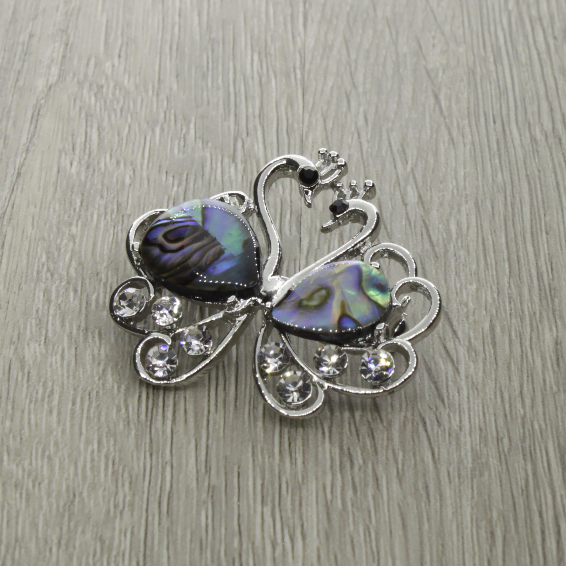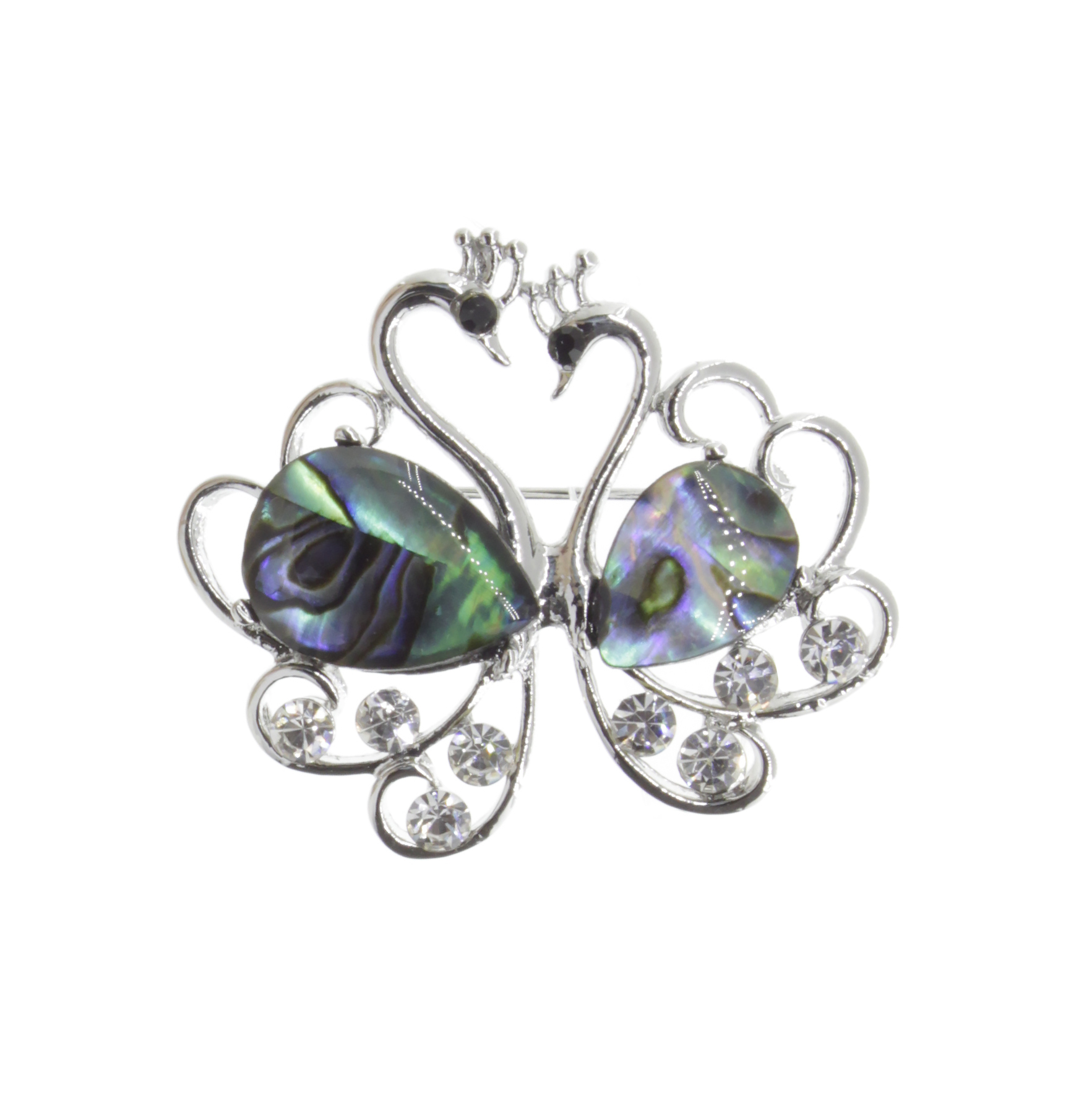 Брошь "Влюбленные лебеди" со вставками из гелиотиса и ювелирного сплава