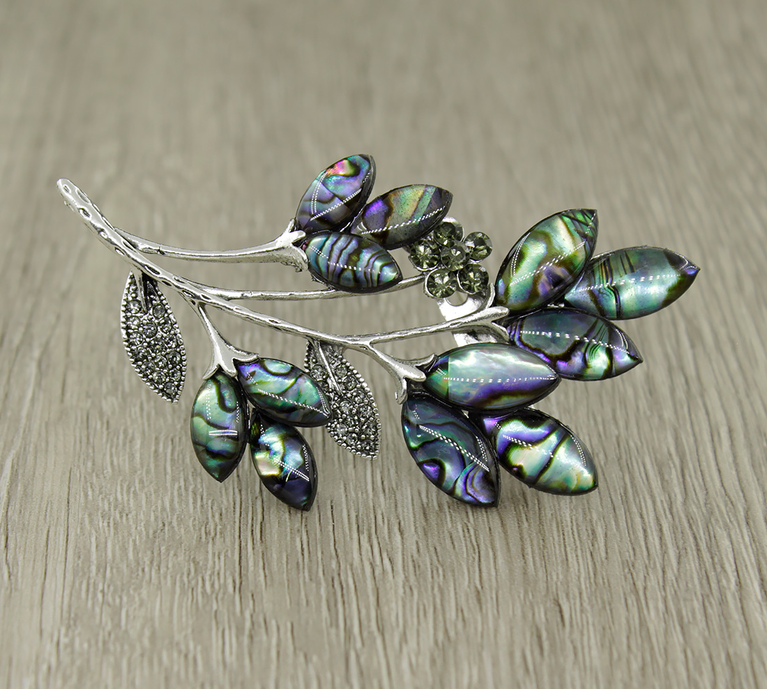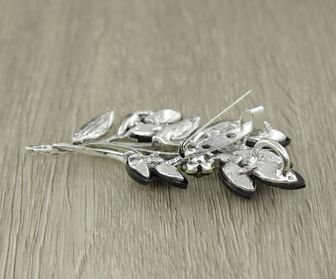 Брошь в виде цветущей веточки со вставками из гелиотиса. Размер броши 37х70мм. На украшении имеется скрытая петля, что позволяет использовать её, как кулон.