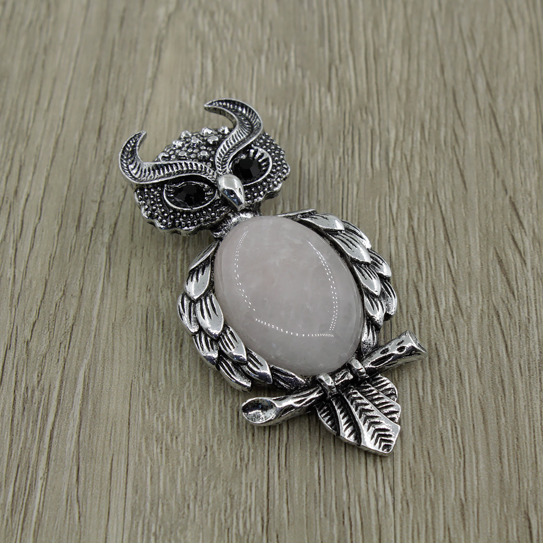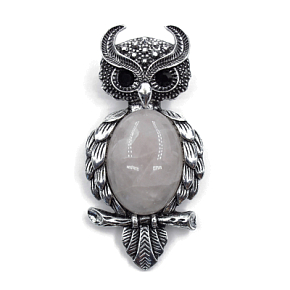 Брошь "Филин" кварц розовый
