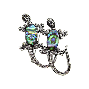 Брошь "Ящерки" перламутр гелиотис