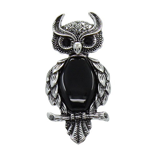 Брошь "Филин-2" выполнена из натурального агата и дополнительно украшена яркими стразами. Размер брошки 30х60мм.