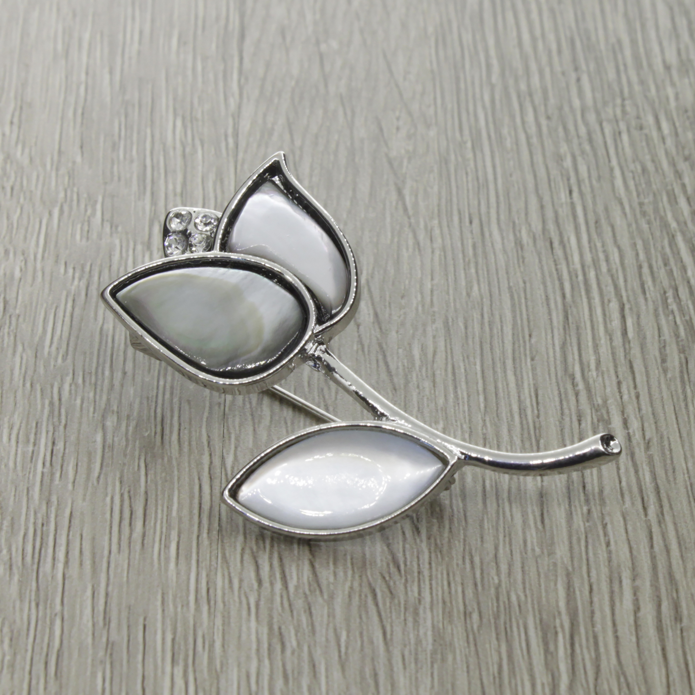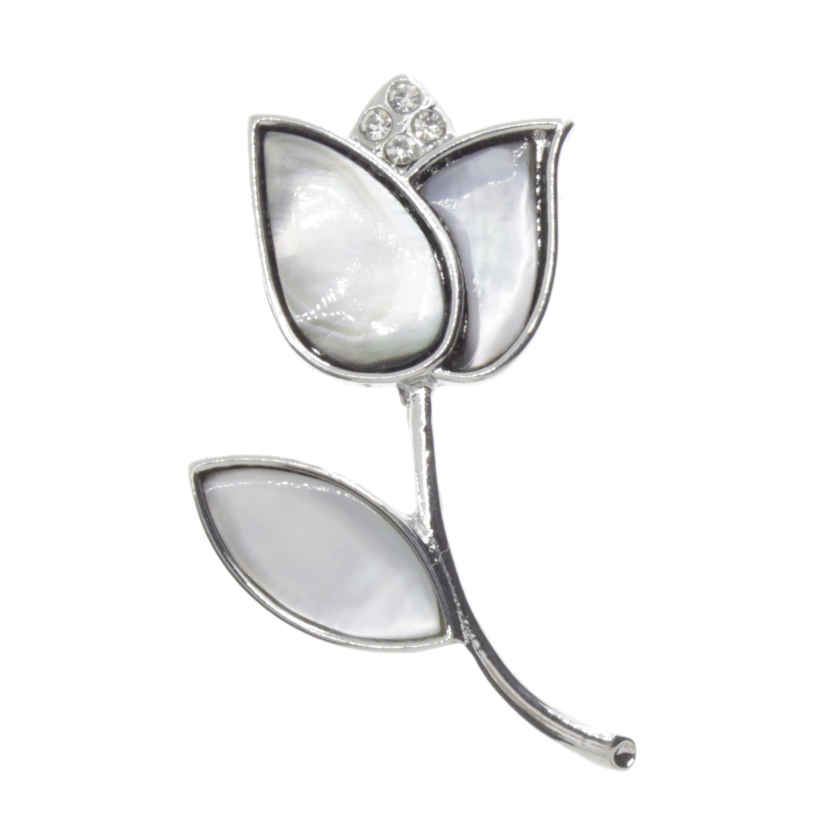 Брошь-подвеска "Тюльпан" со вставкой из серого перламутра и ювелирного сплава
