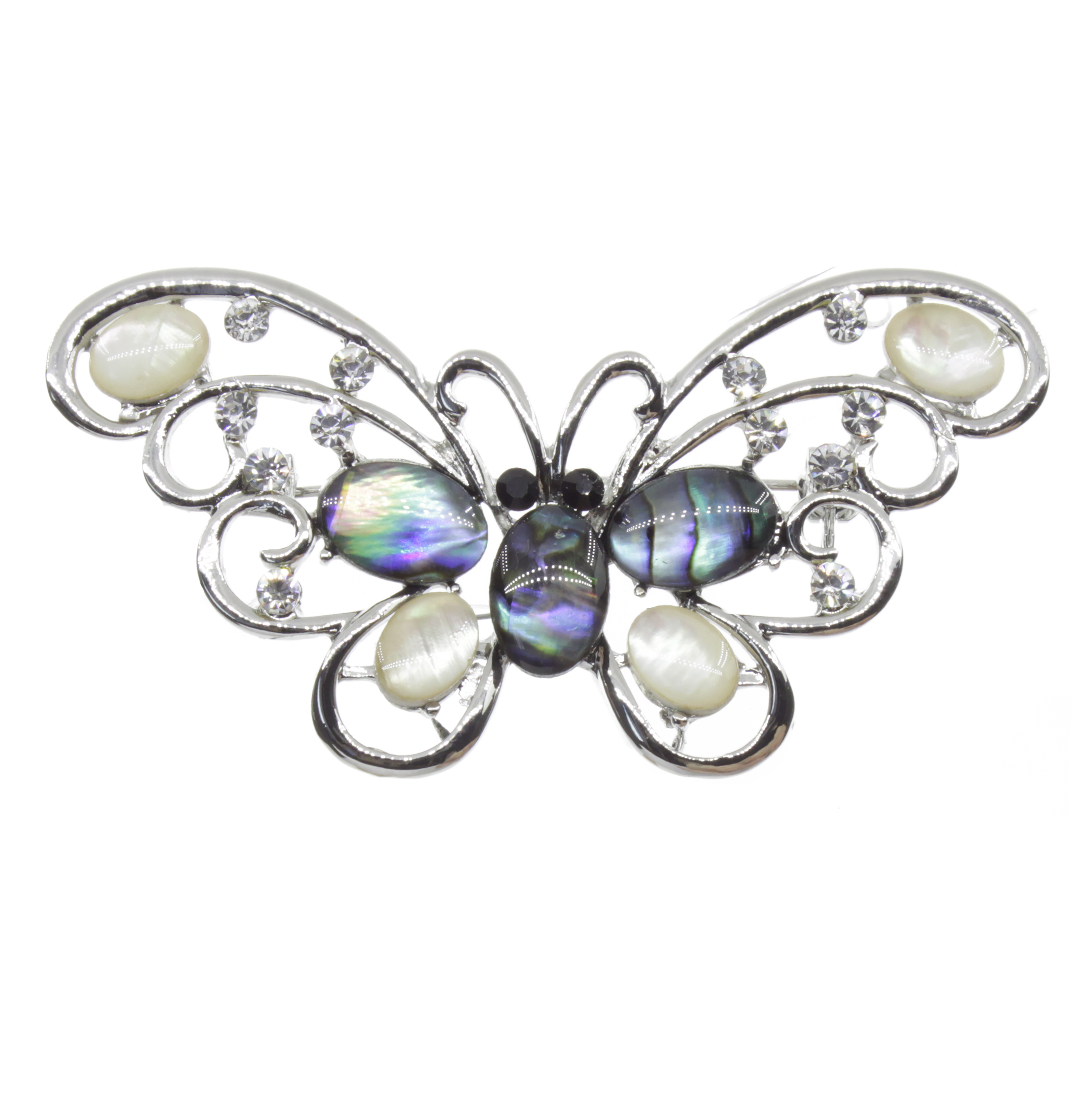 Брошь "Бабочка" со вставками из гелиотиса и белого перламутра