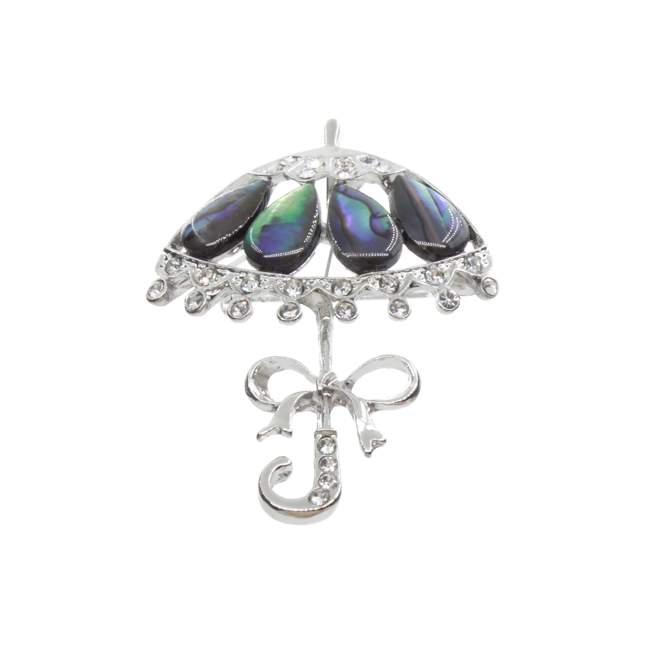 Оригинальная брошь в виде зонтика. На украшении имеется скрытая петля, что позволяет использовать её, как кулон. Размер броши 38х51мм.
