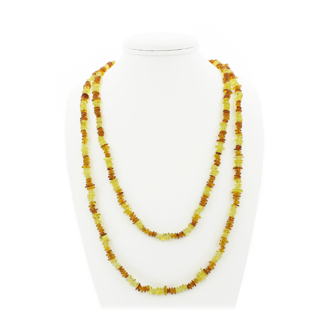 Янтарь светлый и желтый, бусы из овальной гальки, длиной 140см