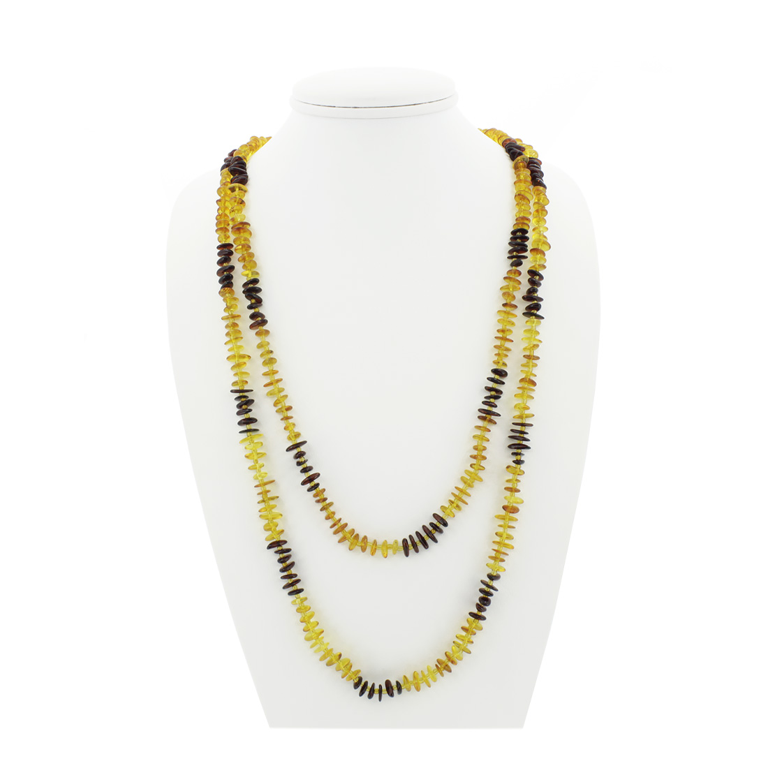 Длинные янтарные бусы из мелкой желтой и коричневой гальки натурального янтаря с бисером. Длина бус позволяет носить их в два яруса или завязать узлом. Средний размер бусин 6x7мм. Длина бус 150см.