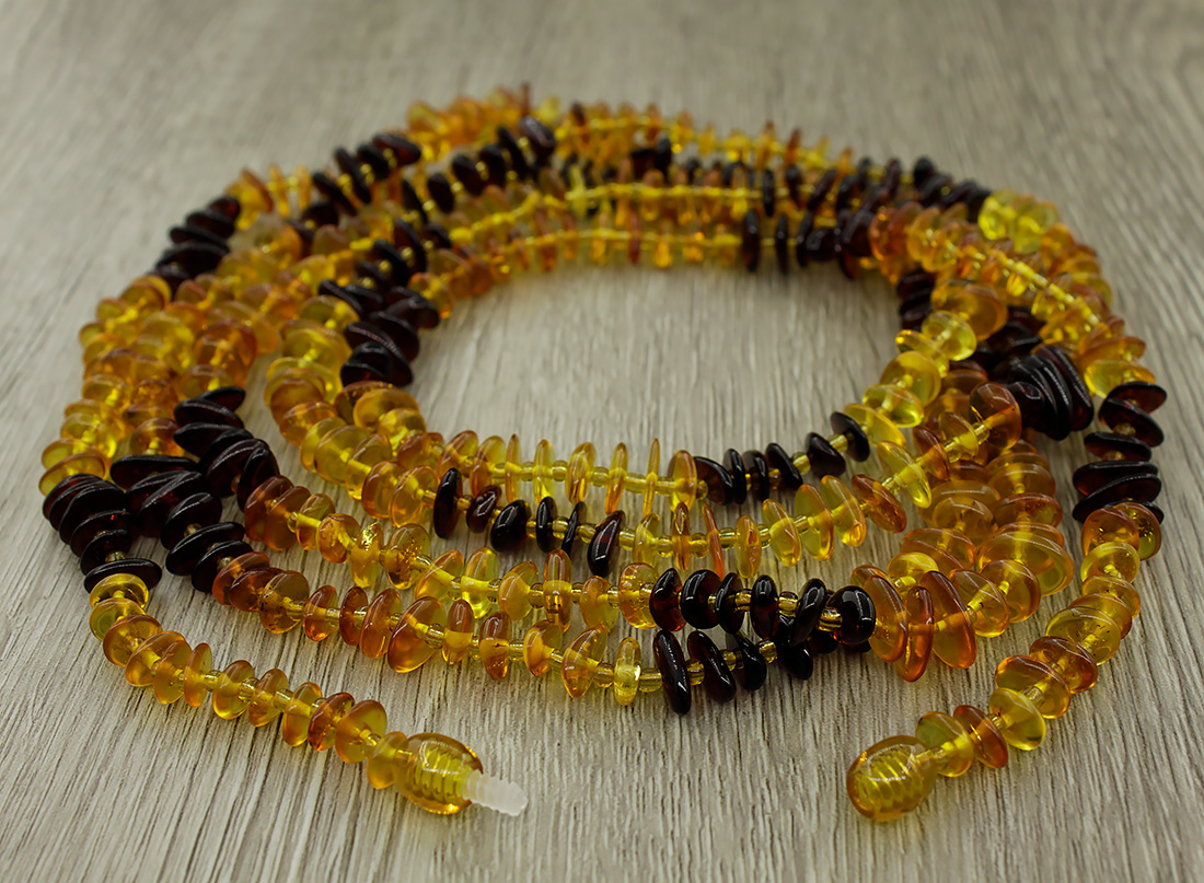 Янтарь светлый и темный, мелкая галька с бисером, бусы длиной 150см