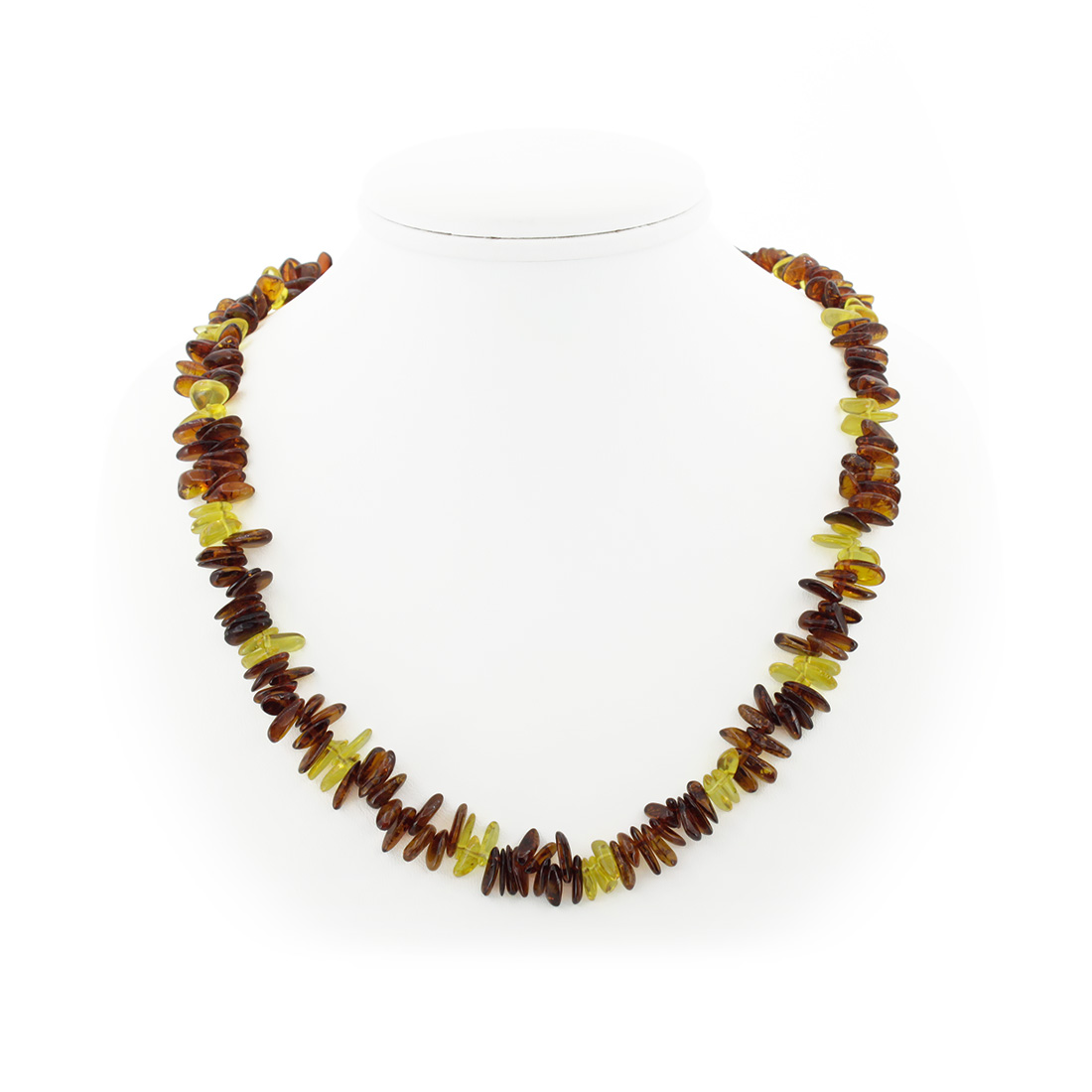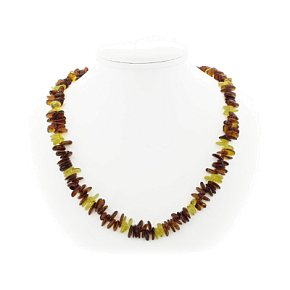 Янтарь светлый и темный, разноразмерая галька, "Елочка" бусы длиной 57см