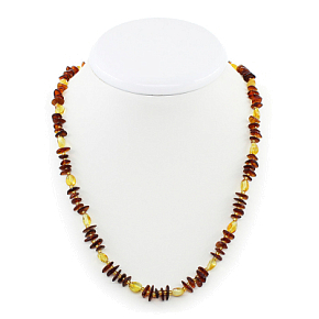 Бусы янтарь темный и прозрачный "Шишечки", галька, короткие 48см