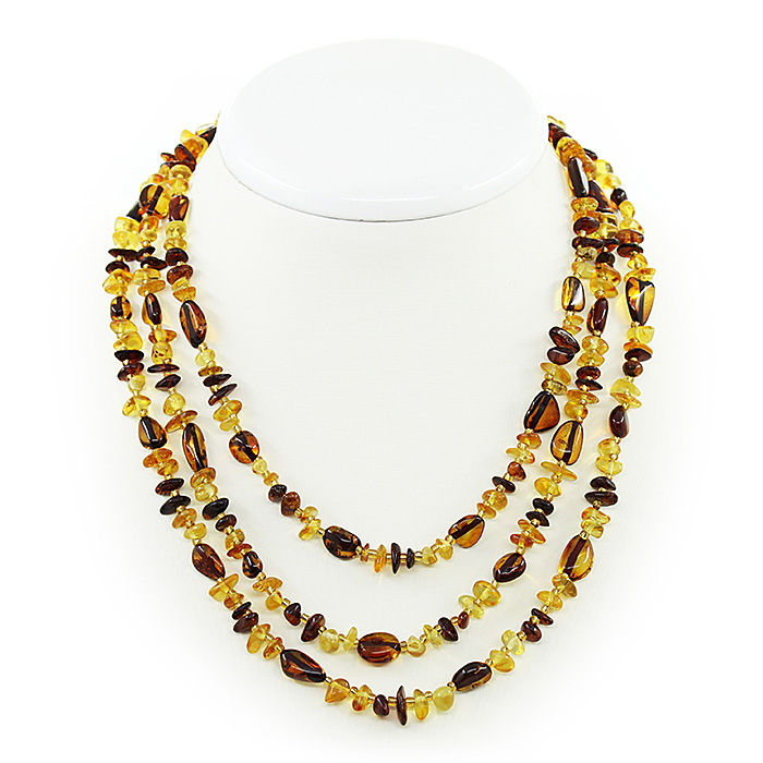 Бусы янтарь, галька 3 цвета, длинные 140см