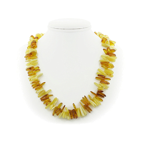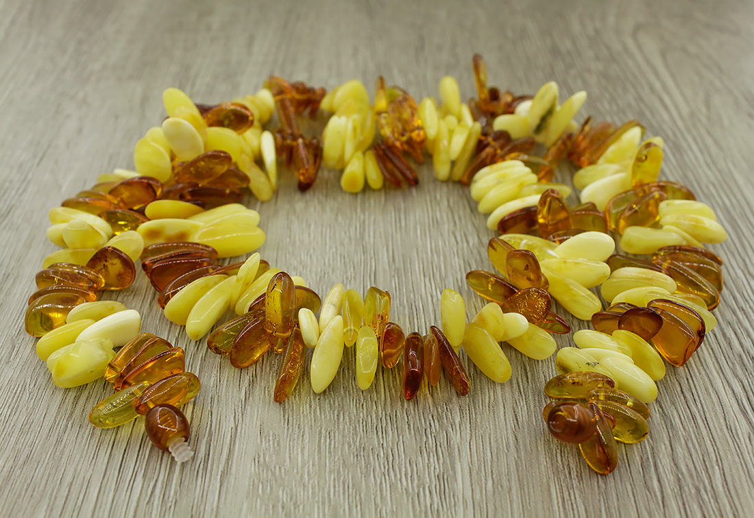 Янтарь светлый и молочный, разноразмерная галька, бусцы длиной 58см