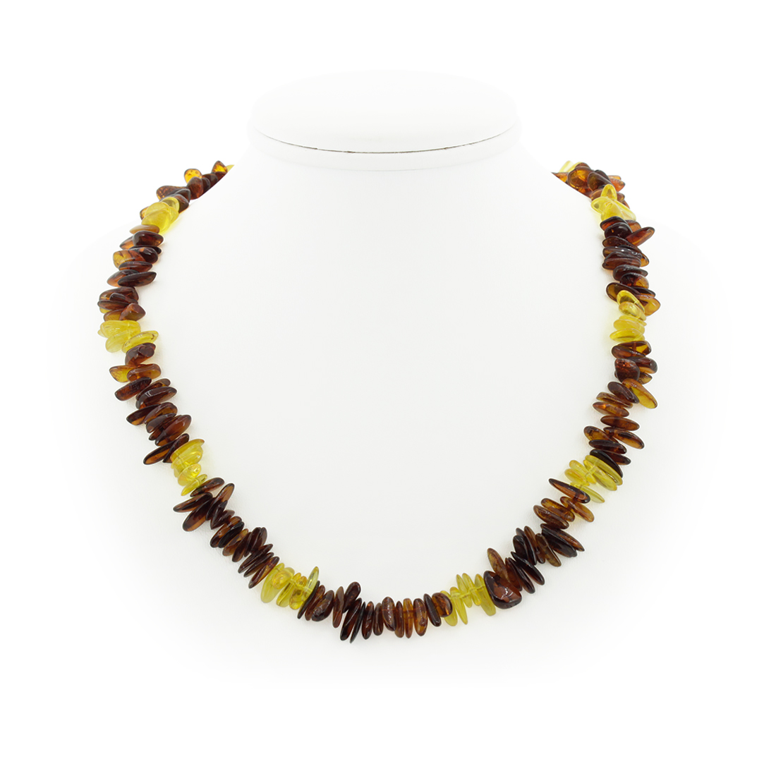 Янтарь темный и светлый, бусы из разноразмерной гальки длиной 56см