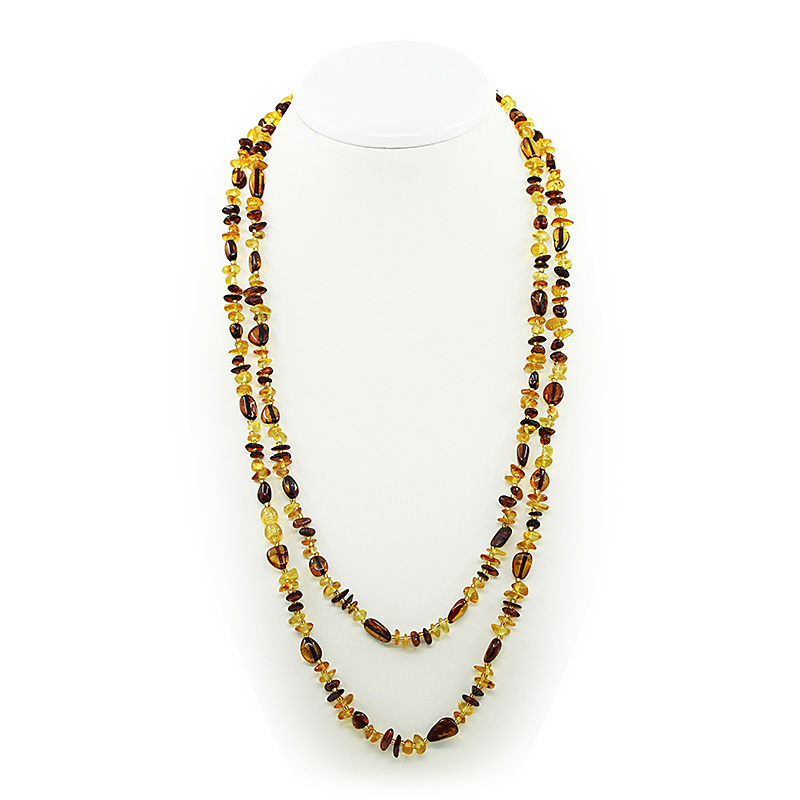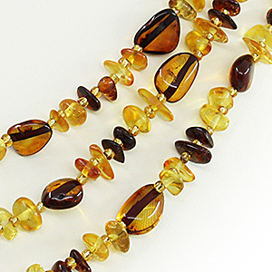 Бусы янтарь, галька 3 цвета, длинные 140см