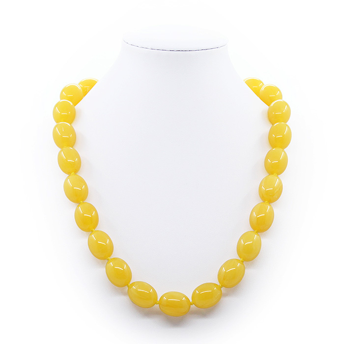 Бусы янтарь молочный (имитация), зерно 15х20мм, короткие 55см