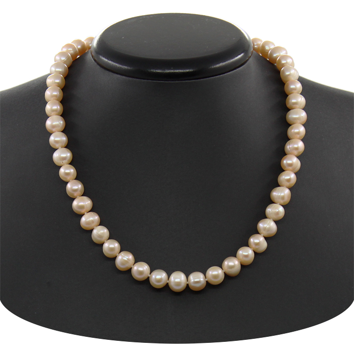 Жемчуг розовый, 9мм круглый, бусы длиной 53см