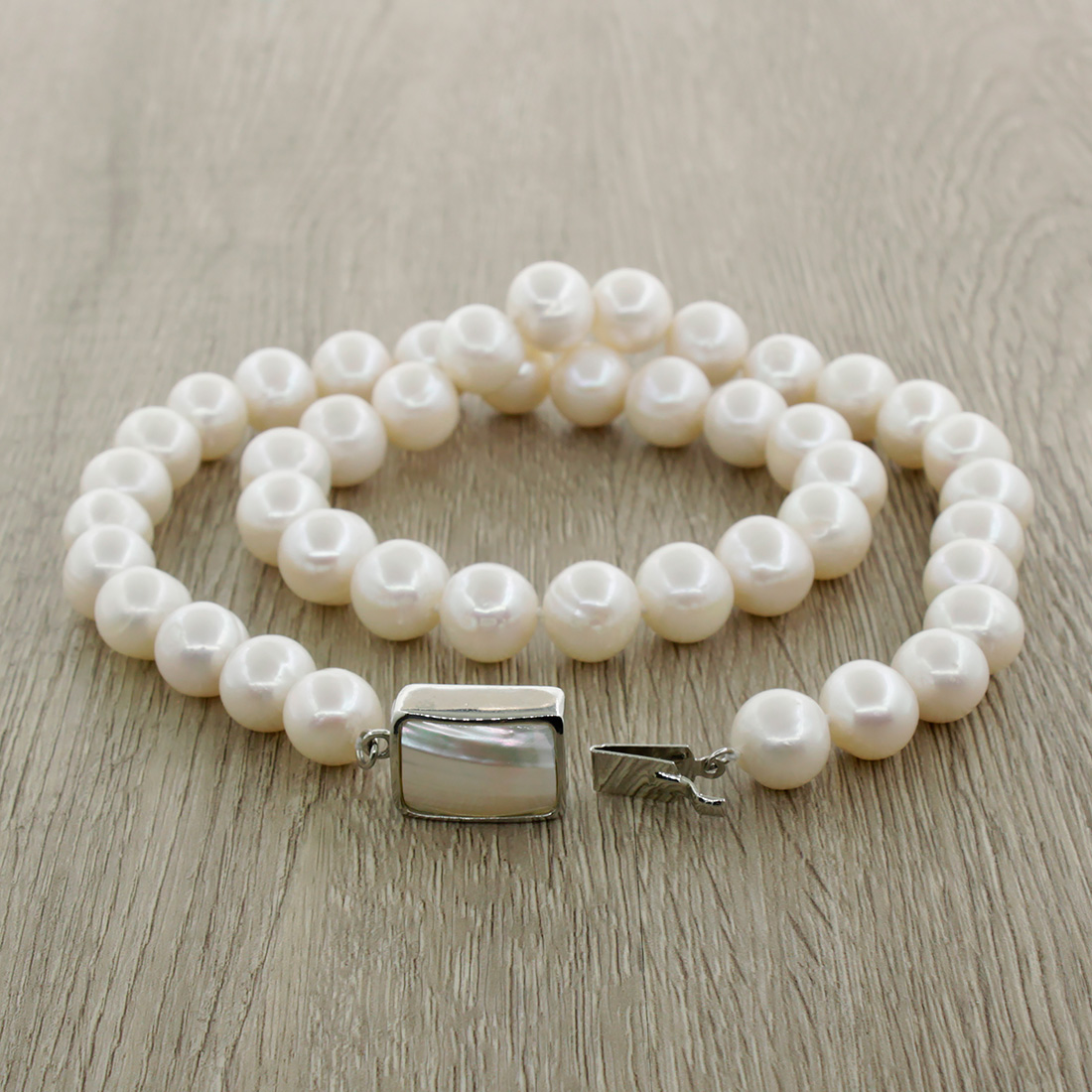 Бусы белый жемчуг, очень ровный 9мм класс А, длина 46см