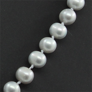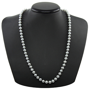 Жемчужная нить из ровного серого жемчуга. Диаметр бусин 7мм, длина бус 63см.