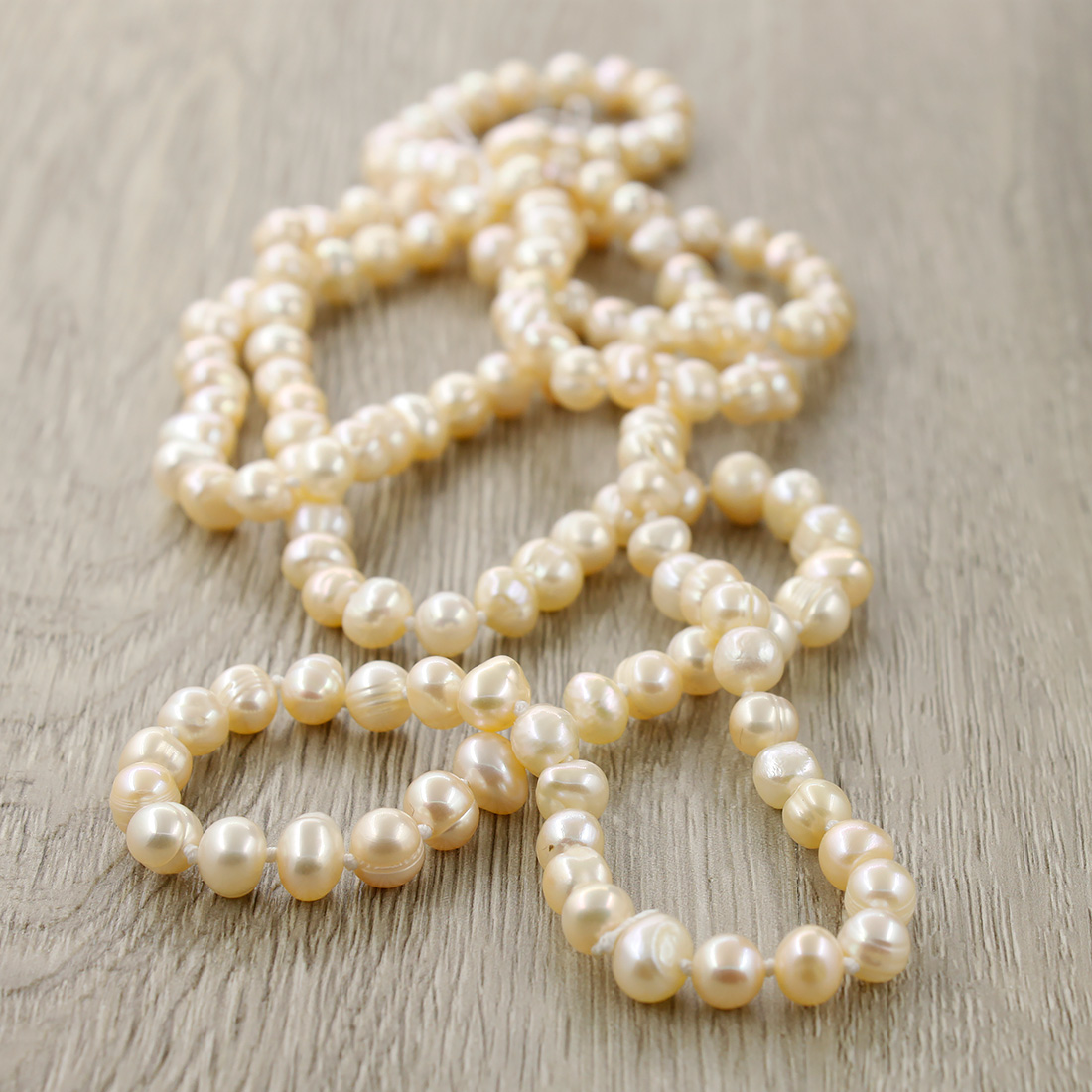 Бусы розовый жемчуг, круглый неровный 7мм, длина 116см