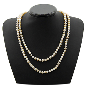 Длинные бусы из натурального розового жемчуга диаметром в среднем 7мм, длина изделия 116см.