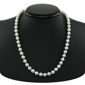 Бусы белый жемчуг, круглый ровный 7-8мм через узелок, короткие 45см