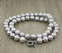 Бусы из практически идеально ровного серого жемчуга. Прекрасно дополнят Ваш повседневный или вечерний наряд. Диаметр жемчужин около 10мм, длина бус 50см.