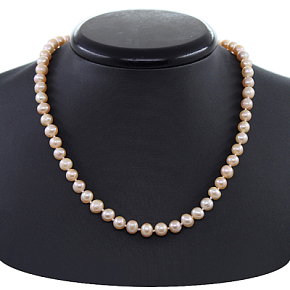 Бусы розовый жемчуг, ровный круглый 6мм, короткие 49см