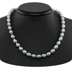 Серый жемчуг овальной формы подойдет утонченным и романтичным натурам. Прекрасный выбор для праздничного наряда. Размер жемчужин 6 х 10мм, длина изделия 45см.