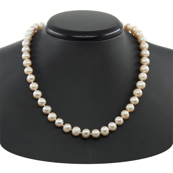 Бусы розовый жемчуг, ровный крулый 9мм, короткие 42см