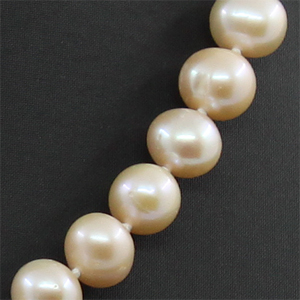 Розовая жемчужная нить. Диаметр бусин 8-9мм, длина бус 42см.