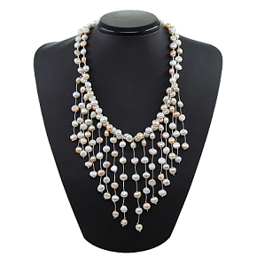 Колье жемчуг mix белый и розовый "Королева", круглый неровный 8мм, короткое 50см