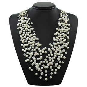 Колье белый жемчуг "Снежная Лилия", 15 ниток, короткое 53см