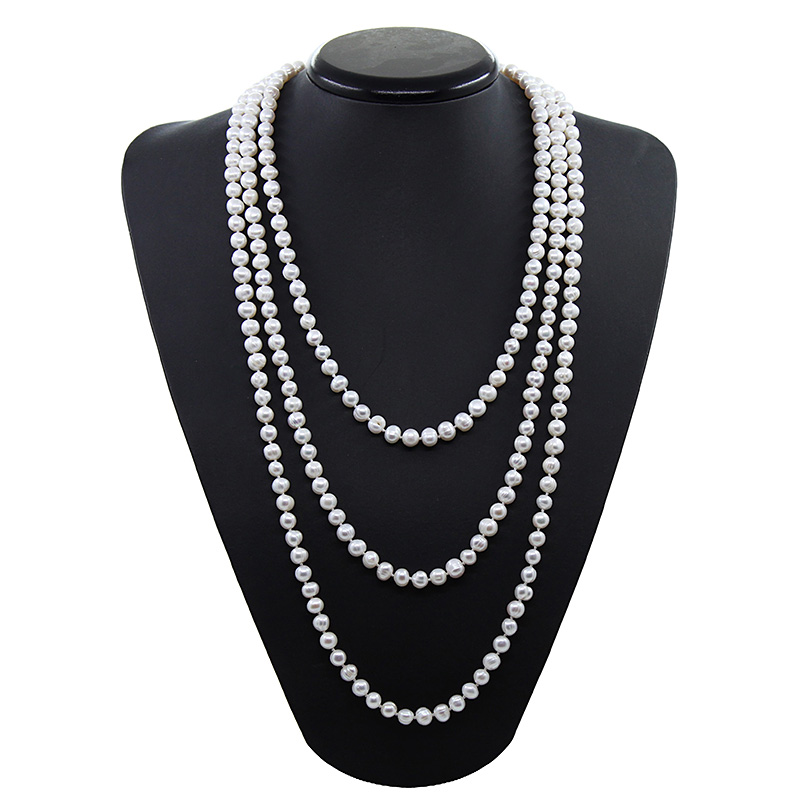 Бусы жемчуг белый, неровный круглый 7мм, очень длинные 196см