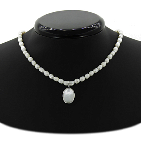 Жемчуг 5х7мм белый, колье-чокер "Ренессанс" с овальной вставкой из белого перламутра, длиной 40...45см