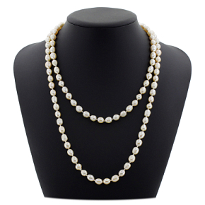 Длинные бусы из розового жемчуга овальной формы. Примерный размер жемчужин 8х9мм, длина изделия 116см.