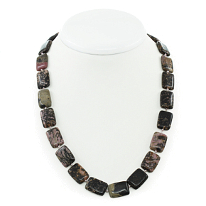 Бусы родонит, плоские прямоугольные 13х18мм, короткие 50см