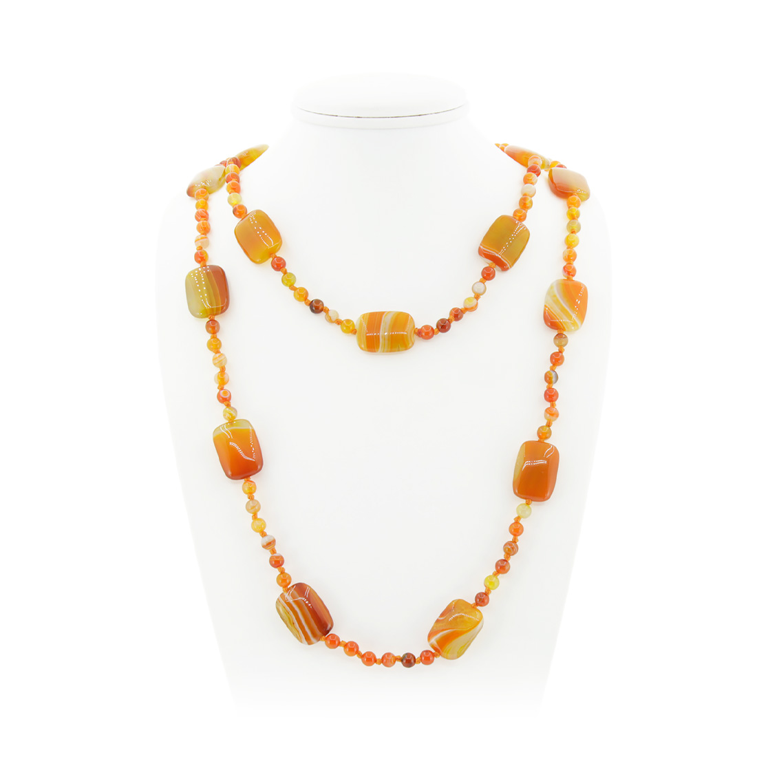Агат оранжевый (Бразилия), плоские прямоугольные бусины 18x25мм, бусы "Гармония" длиной 126см